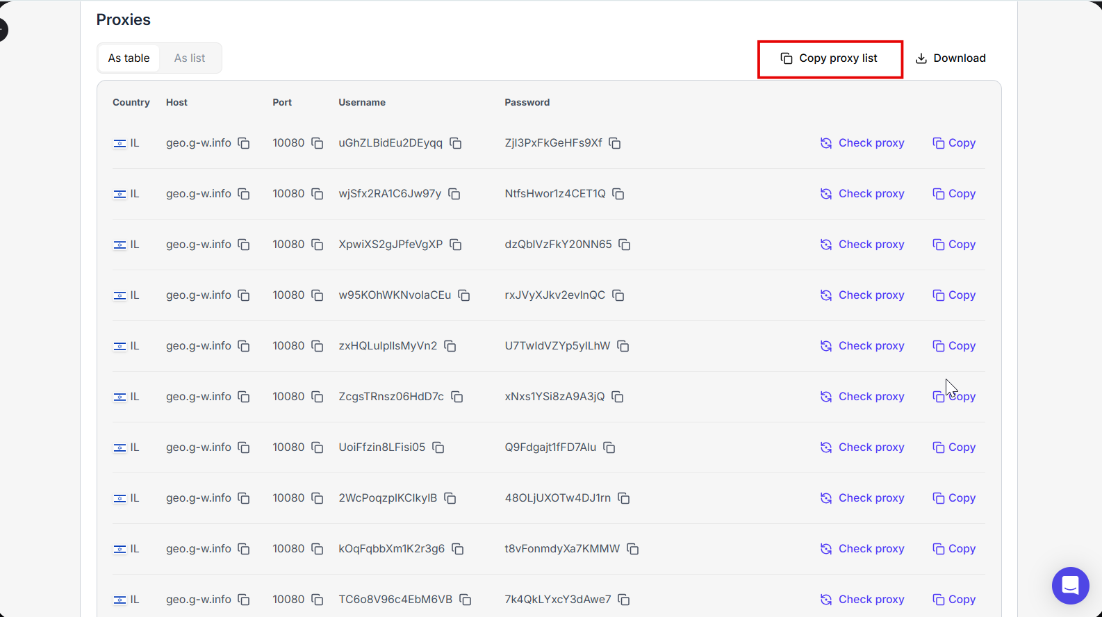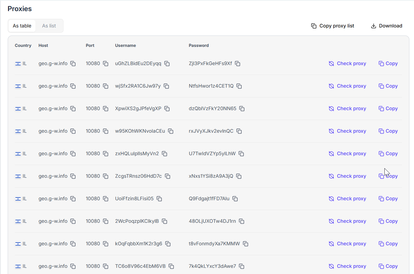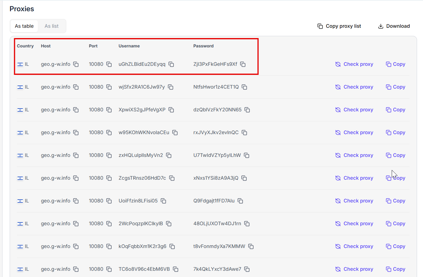 - Congratulations, you have successfully gotten your high-quality Israel IPs. Your proxy list should look like this: