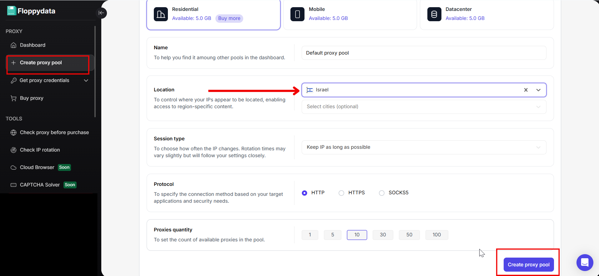 In this section, we will cover how to get Israel IP addresses from Floppydata dashboard