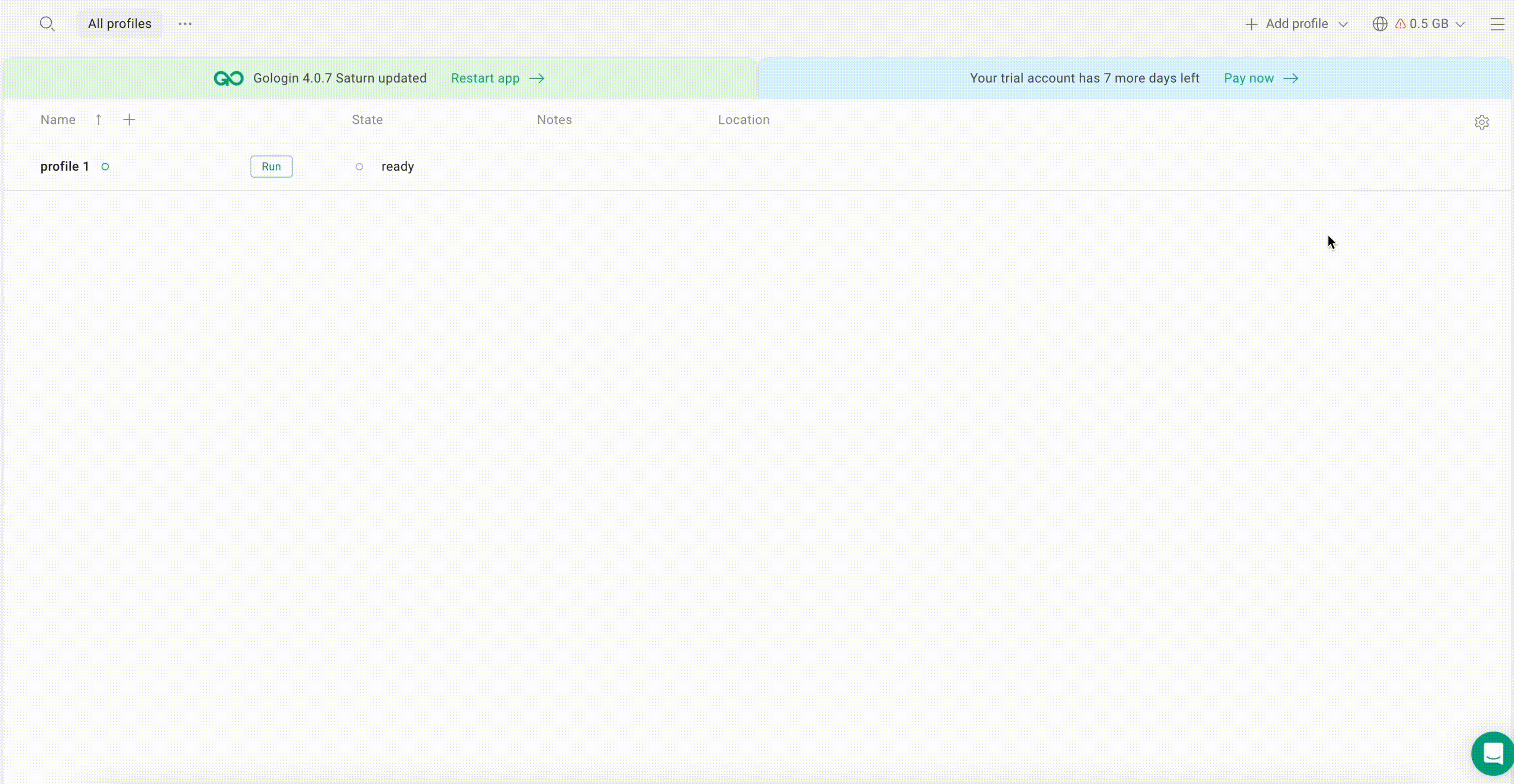 Step 5: Once you click on the green “+ Import proxies” button, Gologin will automatically validate them, and your proxy list is ready to be used.