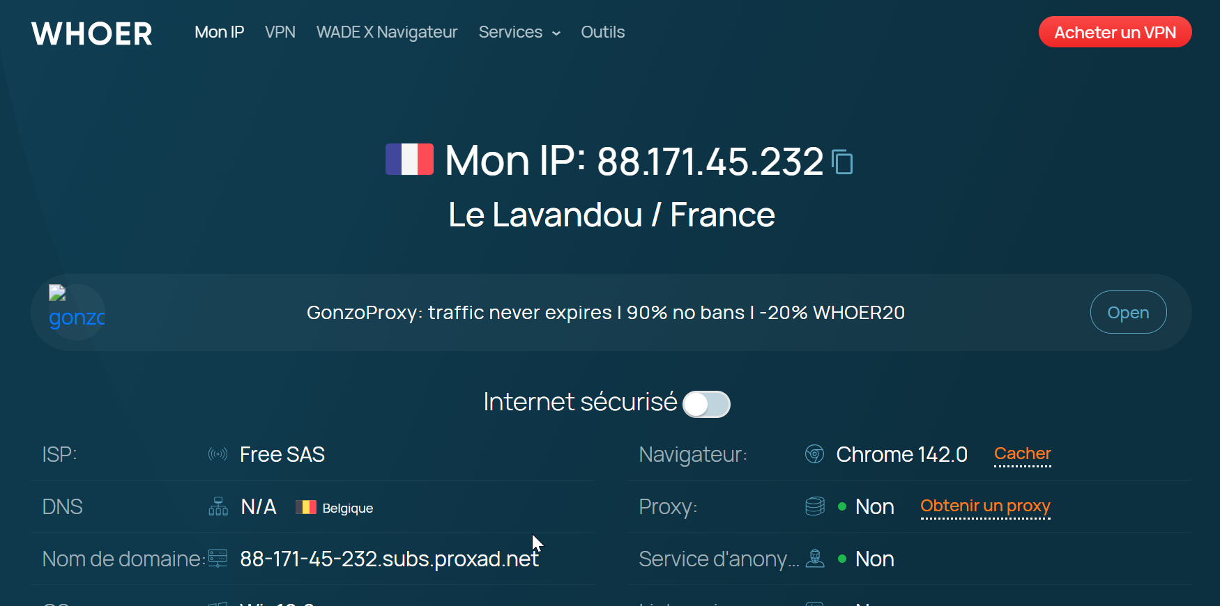 It is necessary to verify the status of your proxy IPs before connecting to 4chan. You can do this by visiting Whoer.net or whatismyipaddress.com to get the details of your network connection. The displayed IP address and location should match the proxy details copied by Floppydata’s dashboard