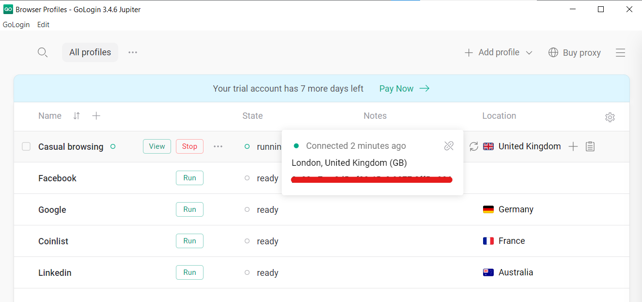 Install it and sign up using Google or email. Your 7-day free trial will start, which gives you access to almost every Gologin feature.