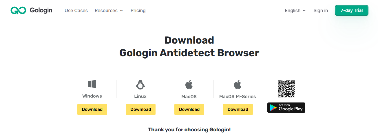You’ll have to grab the Gologin browser for your respective operating system from their official website.