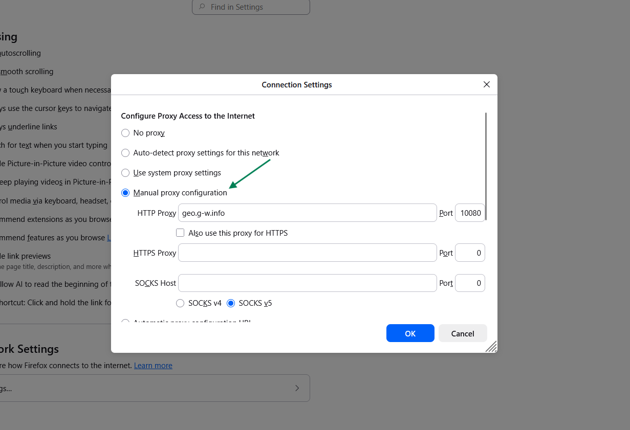 Se abrirá una nueva ventana en la que podrás configurar los ajustes del proxy.