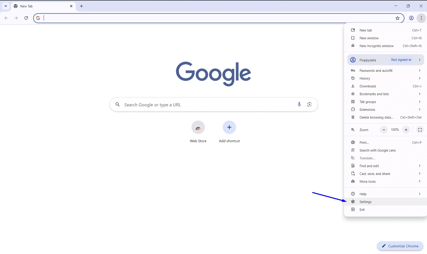 Después de comprar tus IPs indias a Floppydata siguiendo las instrucciones anteriores, abre tu navegador Chrome y haz clic en los tres puntos de la esquina superior derecha y selecciona Configuración.