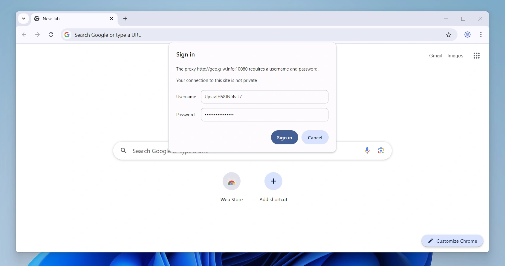 Ahora, reinicia tu navegador Chrome y, cuando lo abras, se te pedirá que introduzcas un nombre de usuario y una contraseña. Esos también están en la lista de proxy pool, sólo tienes que copiarlos y pegarlos.
