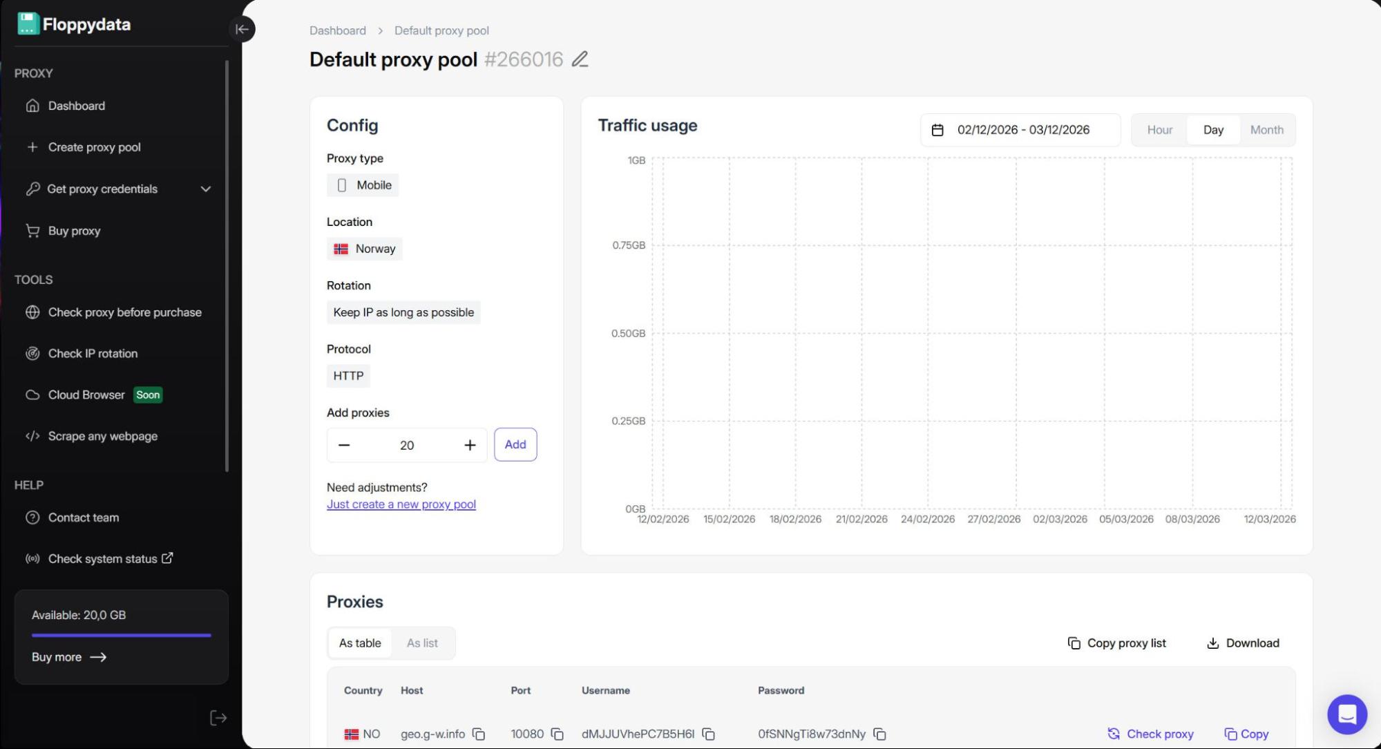 Depois de determinar o provedor que funciona melhor para você, surge a última pergunta: como obter proxies da Noruega? Vou mostrar a você como usar um painel e adquirir seu próprio pool de proxy, usando o Floppydata como exemplo.